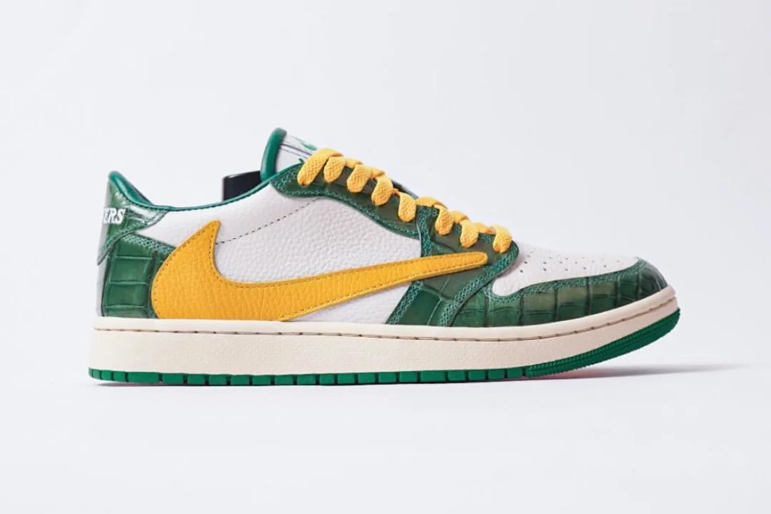 Roger Hung (@shoecutterz) creates customer bespoke sneakers from scratch. Recently, he made a few golf versions that were over the top including this Masters x Cactus Jack inspired Jordan 1 Low which uses grade A glazed porosus croc, tumbled Italian cowhide, nappa lambskin lining, on top of a zoom CMFT 2 sole.